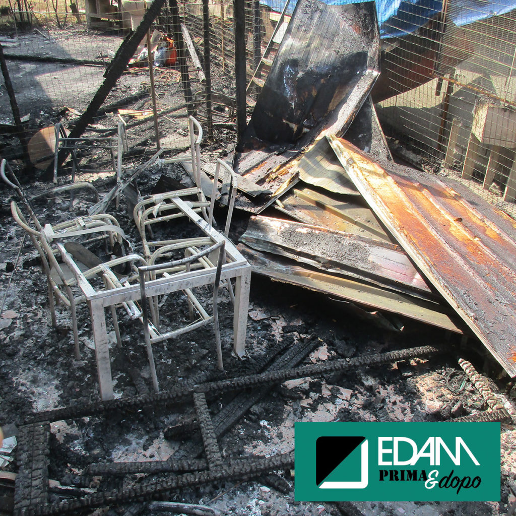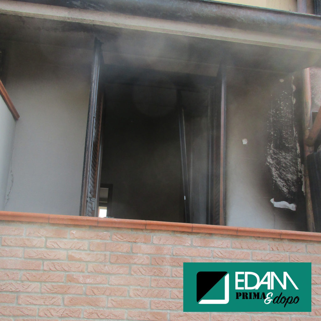 | Conseguenze/danno | Cortile interno distrutto, facciata danneggiata, infissi bruciati, vetrate esplose, contaminazione da residui carboniosi fabbricato e contenuti. |