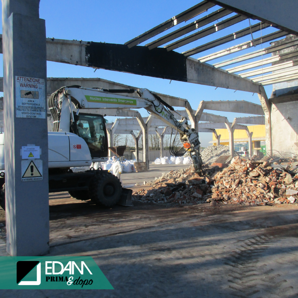 Si è quindi dovuta fare un’attenta separazione delle macerie, con decontaminazione delle stesse dalle fibre di amianto (ove possibile) per ridurre i costi di smaltimento.